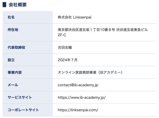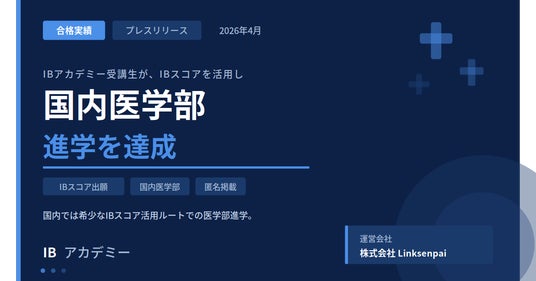 株式会社Linksenpai(所在地:東京都渋谷区、代表取締役:吉田志織)が運営するIB(国際バカロレア)専門オンライン家庭教師サービス「IBアカデミー」は、在籍生徒の一人が2026年4月、IBスコアを活用した出願により国内医学部への進学を果たしたことをご報告します。