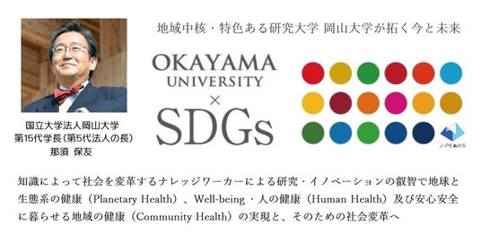 国立大学法人岡山大学は、国連の「持続可能な開発目標(SDGs)」を支援しています。また、政府の第1回「ジャパンSDGsアワード」特別賞を受賞しています。地域中核・特色ある研究大学として共育共創を進める岡山大学にご期待ください