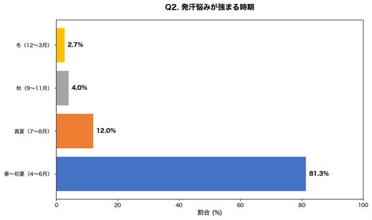 【調査結果】81.3%が春~初夏(4~6月)に発汗の悩みが急増すると回答
