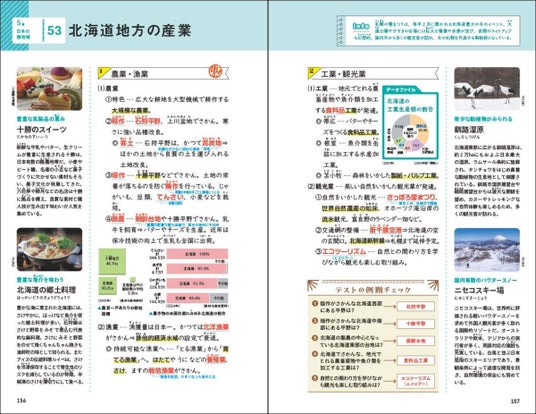 ページの左右には、学習内容に関連した観光情報が載っており、楽しみながら地理や歴史を学べるので、知識がより記憶に定着しやすくなります。
