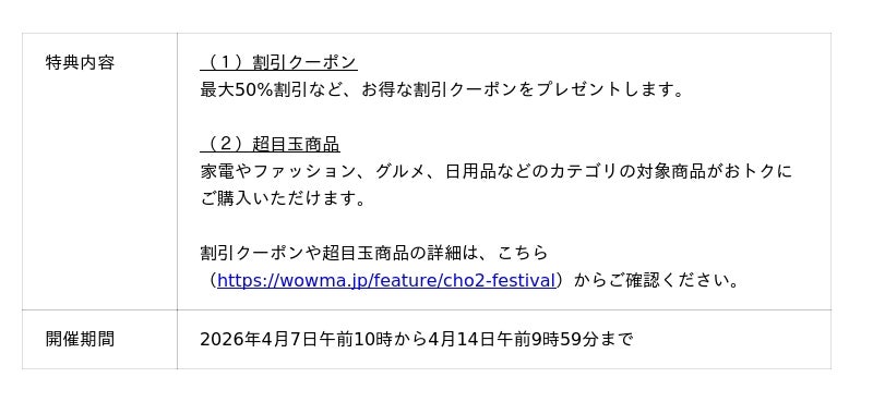 ■ポイント超超祭の特典(https://wowma.jp/feature/cho2-festival)