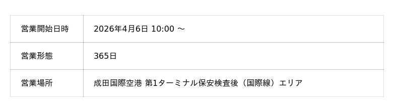 ~ 4月6日より成田国際空港 出国手続き後エリアにて365日営業 ~