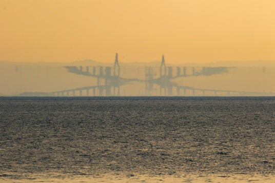 (※2)蜃気楼は、空気中で光が屈折して5~20km離れた景色が実際とは違う形に見える現象です。春は上位蜃気楼と言われ、実際の風景の上側に、伸びたり反転した虚像が出現します。