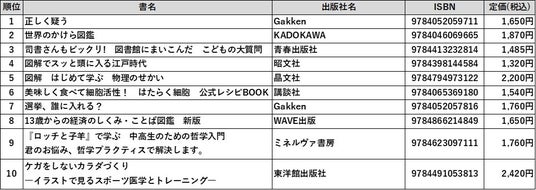 日本出版販売株式会社(代表取締役社長:富樫 建、略称:日販)が運営する日販図書館選書センターは、来場した学校図書館関係者によって選書された図書を、【セット部門】【単品部門(小学校)】【単品部門(中学校)】の3ジャンルで選書冊数順にランキング化し、毎年発表しています。