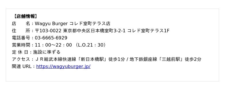 Wagyu Burger コレド室町テラス店「シン・日本橋バーガー」
