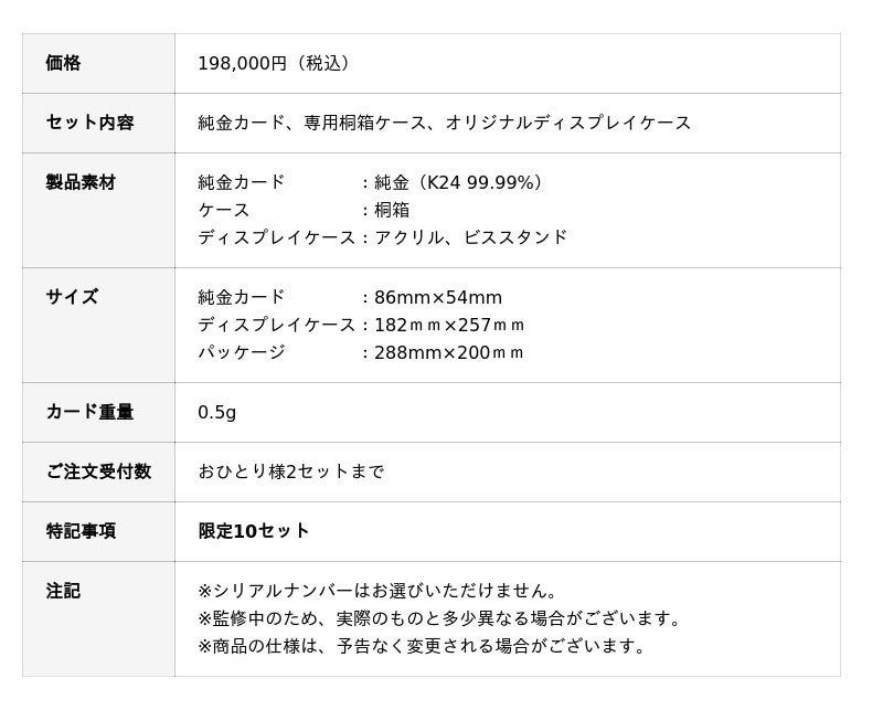 本カードは限定10セットの50thメモリアルコンプリートセット(全3種各1枚入り)の各種10枚を含め、合計各50枚のみの限定販売。