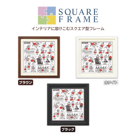 AREKORE ムーミンムーミンの様々な表情やポーズが「あれこれ」とたくさん描かれている楽しいアートです。ムーミンの豊かな表情がとてもユニークで、スナフキンをはじめとした、ムーミンに関わりの深いキャラクターやご先祖さまもいます。スクエアパズルの中に散りばめられたアートを隅々までお楽しみください。