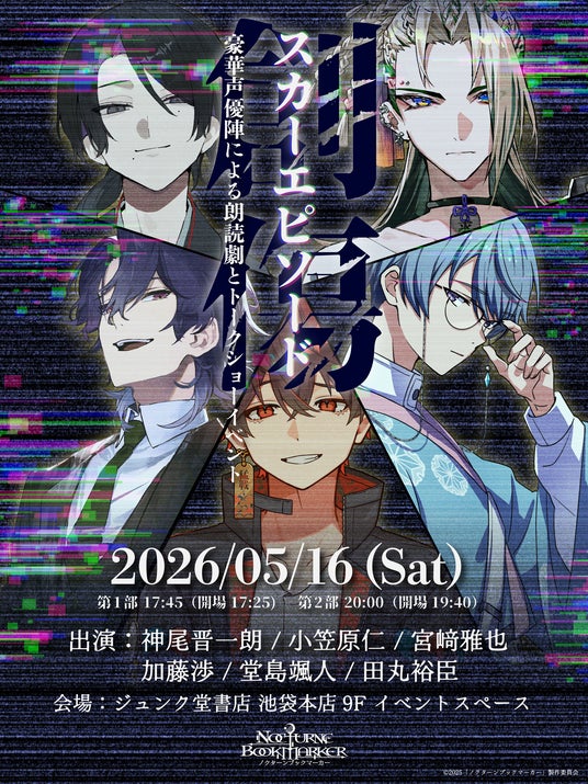 日販セグモ株式会社(本社:東京都千代田区、代表取締役:安井邦好)は、書店×物語連動型の新規メディアミックスプロジェクト「ノクターンブックマーカー」の世界を“声”で立ち上げるスペシャルリーディングイベント「スカーエピソード」を、2026年5月16日(土)にジュンク堂書店池袋本店にて開催いたします。