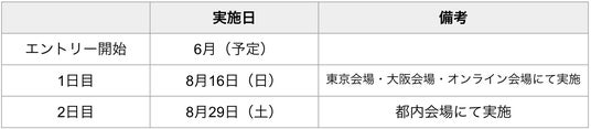 今年も昨年同様、2日間にわたって開催。1日目はエントリーした全員が参加し、1日目を勝ち抜いた人のみが2日目に参加することができます。1日目は8月16日(日)に東京、大阪、オンラインにて開催、2日目は8月29日(土)に都内会場にて開催予定です。