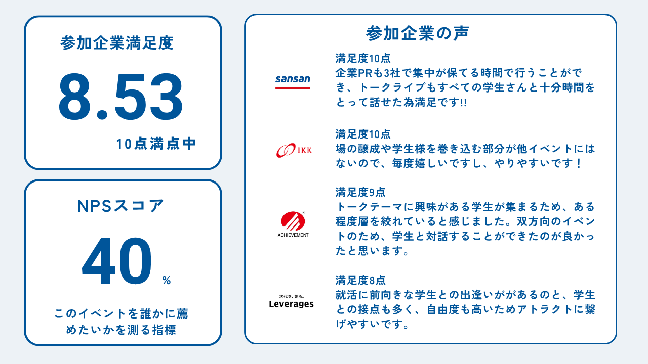 ■ 参加企業満足度8.53点!トークライブが引き出した企業様のリアルな声