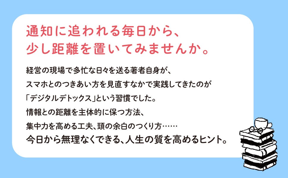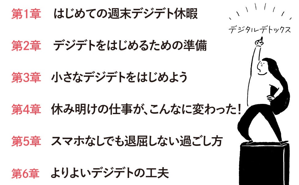 そこで本書では、著者が実践してきたデジデトの具体的な手法を明かします。無理なくデジタルを手放す工夫、得られる変化、スマホなしでも退屈しないプラン集など、読み応えたっぷりの一冊です。