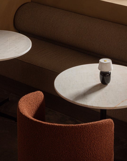コペンハーゲンを代表するデザイン集団「ノームアーキテクツ」の共同創設者ヨナス・ビエレ=ポウルセンが、アートディレクター クリスチャン・モラー・アンデルセンと協働してデザインしたこの460平方メートル の空間は、イタリアの歴史主義建築と1930年代モダニズムの幾何学的な秩序から着想を得ています。高くそびえる列柱がゲストをいくつもの空間へと導き、リズム、プロポーション、素材の調和によって、静けさの中に温かみのある雰囲気が生み出されています。