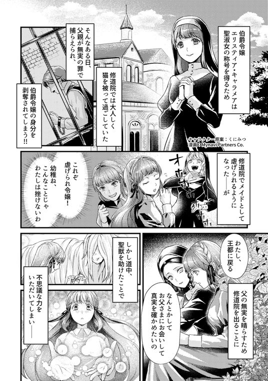 エリスティアは聖淑女の称号を得るために、修道院では大人しく猫を被って過ごしていた。しかし突然、父親が無実の罪で捕らえられ、伯爵令嬢の身分を剥奪されてしまう。