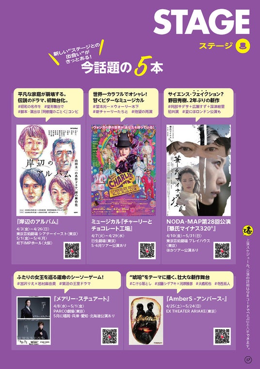 『とぶ!ぴあ』は「両面表紙」構造を採用。及川イラスト表紙を入口に映画・ステージ・アート・クラシック・音楽の5ジャンルを網羅的にリスト化した「情報のぴあ」と、反対側の特集表紙を入口にエンタメの「いま」を深掘りする「企画のぴあ」、どちらからでも読み始められます。各作品に添えられたQRコードをスマートフォンで読み込めば、デジタル版の「ぴあ」の作品詳細ページへ直接“とぶ”ことができ、上映スケジュールの確認、予告編動画の視聴、関連記事の閲覧、チケット購入までワンストップで完結します。