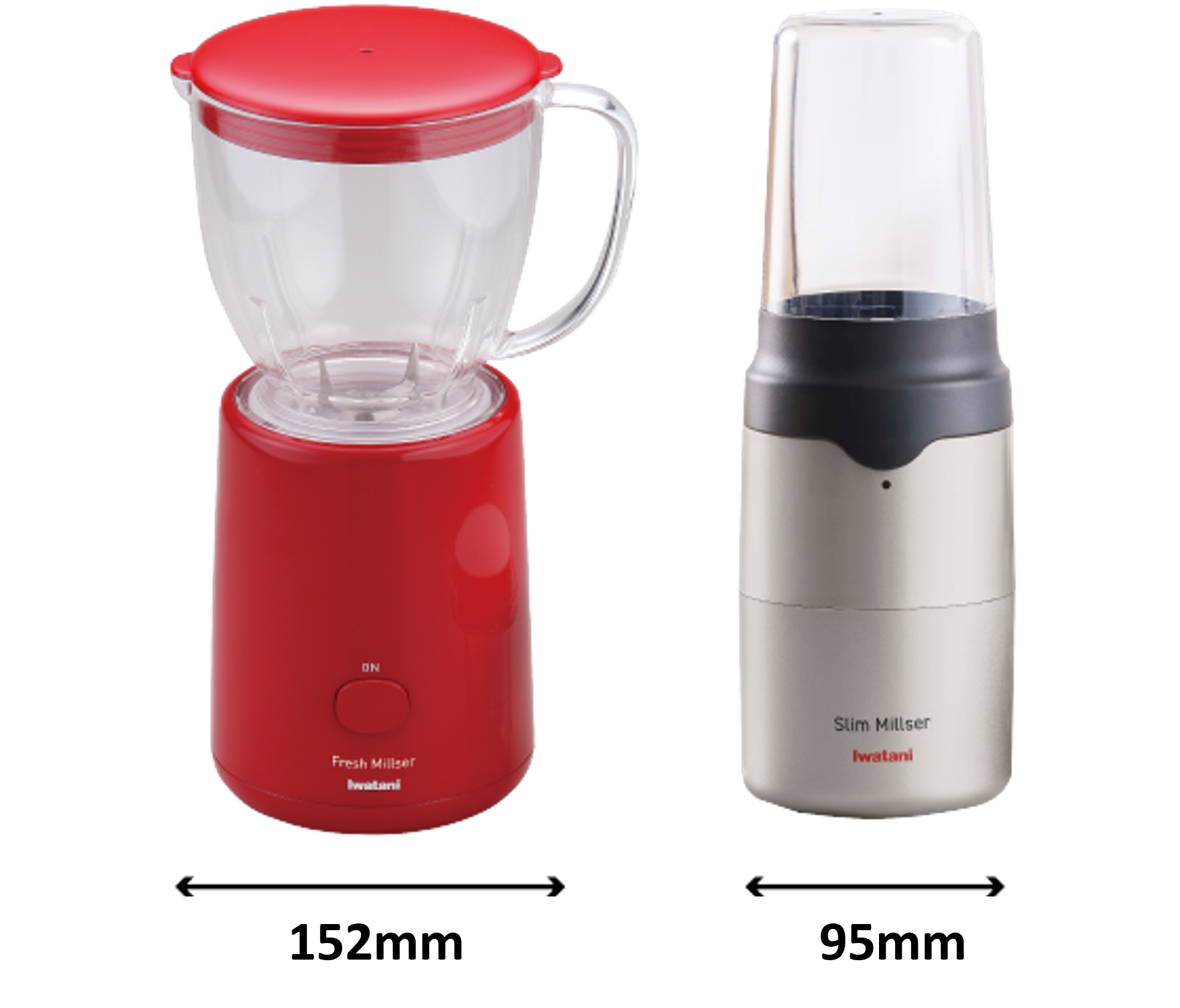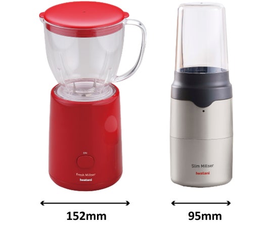 従来品「フレッシュミルサー」(左)と新商品「スリムミルサー」(右)比較