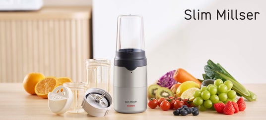 そこで、現代の住環境や幅広い世代の使い勝手に適応する「キッチンに出しっぱなしにできる一台」を目指し「スリムミルサー」を開発しました。ミルサーの高い粉砕力はそのままに、素材や設計を最適化することで、軽く小さく、手入れもしやすくなりました。