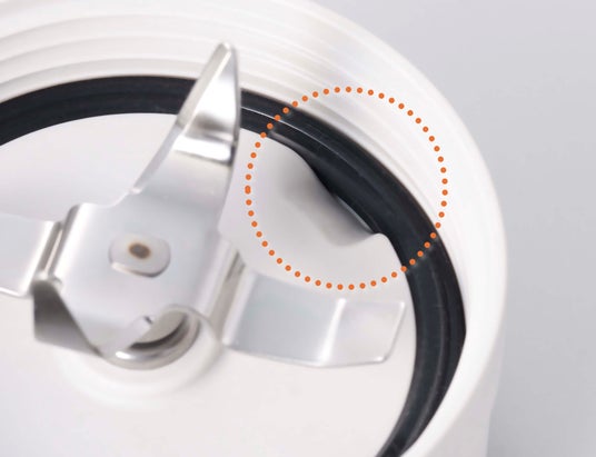 毎分2万回転の高速回転と粉砕力の高い4枚のカッターにより、煮干しや茶葉はもちろん、硬いナッツ類も微粉末に仕上げるパワーを備えています。カッターのエッジは刃をつぶして丸く加工した「ラウンドエッジカッター」で、お手入れの際の安全面を考慮しました。さらに、パッキンを外しやすい専用の「切り溝」を設けることで、メンテナンス性を向上しました。