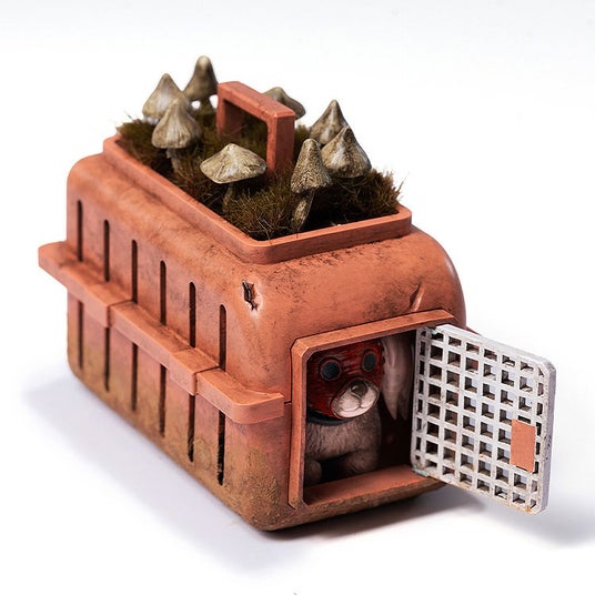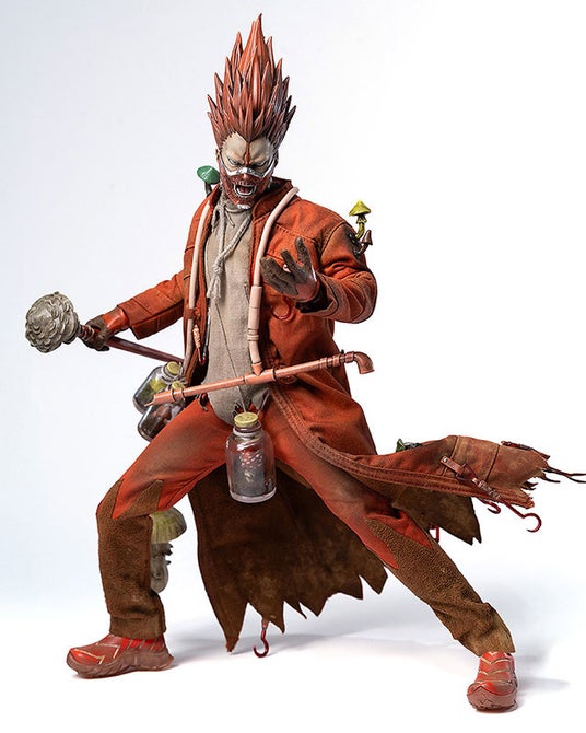 交換式の顔パーツは全2種類あり、マスク装着用の顔と素顔が付属。交換式のマスクは全2種類で、口が閉じたマスクと口が開いたマスクがあり、口が開いたマスクには魔法のケムリのエフェクトパーツが装着可能です。衣装のうち、コートとシャツとズボンは布製(布製衣装は脱がせることが出来ない設計となっています)。土汚れの表現を始めとするウェザリング塗装が施されています。他、キノコ入りの瓶3個、キノコ型の水タバコ容器と喫煙パイプ1セット、キノコの杖、首が可動するキクラゲ、キクラゲを収納可能なペットケージ、そして交換式手首パーツ3対(拳1対、開き手1対、キノコの杖保持用の手1対)が付属します。