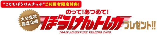 JR九州大分支社では、「こどもぼうけんきっぷ」をご利用の皆さま限定のオリジナル特典「のって!あつめて!ぼうけんトレカ」を数量限定・先着順にてプレゼントします。全10種のうち3種類はシークレット。ここでしか手に入らない特別なカードを手に入れて、思い出に残る鉄道の旅へお出かけください!