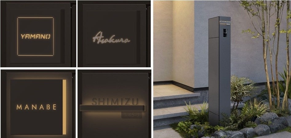 左:4デザインのLED照明表札をラインナップ右:設置イメージ