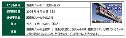 三井住友カード株式会社(本社:東京都江東区、代表取締役 社長執行役員 CEO:大西 幸彦、以下:三井住友カード)は、2026年4月8日(水)より総合交通アプリ「Pass Case(パスケース)」にて湘南モノレール株式会社(本社:神奈川県鎌倉市、代表取締役社長:小川 貴司、以下:湘南モノレール)の『湘南モノレール1日フリーきっぷ』の取り扱いを開始します。