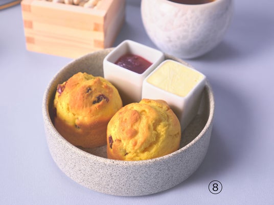 8. ドライクランベリーとマンゴーのスコーン クロテッドクリーム、ベリージャム