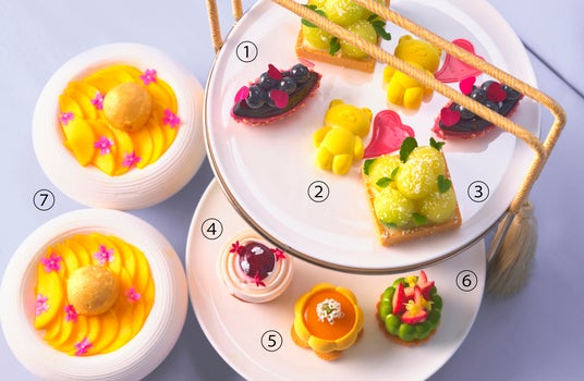 柔らかな春の空気に、初夏の気配が重なりはじめるこの時期。色鮮やかに実るフルーツの軽やかな酸味と透明感ある甘みを主役に、この季節ならではの“生命感あふれる美味しさ”をお届けします。桜香る「アマレナチェリーパウンドケーキ 桜クリーム」、メロンのみずみずしさとホワイトチョコレートの ハーモニーを味わう「メロンとホワイトチョコレートタルト」など、ペストリーシェフによるスイーツは全9種類。フレッシュブルーベリー、アプリコット、マンゴーなど、春の余韻と初夏の息吹を感じるフルーツを贅沢に用い、ムース、タルト、フルーツカルパッチョなど多彩な味わいでご用意しました。セイボリーには「和牛パストラミ・ミニバーガー」をはじめ、ブーケのような「スモーク鱒のリエット入りミニコーン」など見た目にも春を感じる全4種類もラインアップ。京都「小川珈琲」のヒルトン京都オリジナルブレンド、和紅茶など厳選のティーセレクションとともにご賞味ください。さらに、ご自宅でお楽しみいただける「アフタヌーンティー テイクアウトボックス」も登場。2名様分のスイーツを美しいギフトボックスに詰め、お花見やピクニック、ギフトとしても最適な一品です。
