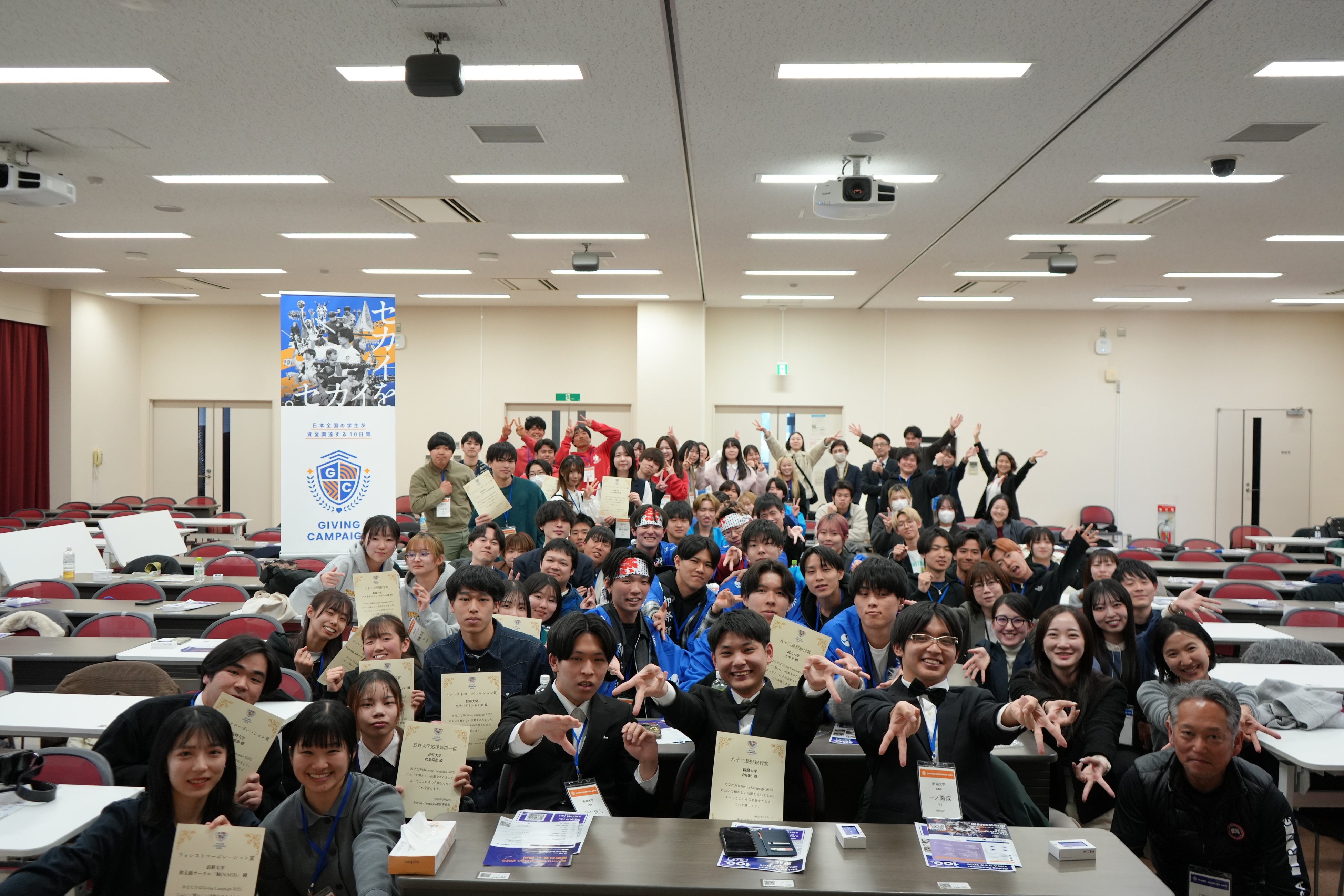 「Giving Campaign 2025」は、全国110大学、5高専、学生連合の計2,800団体が参加する日本最大級のチャリティイベントへと成長しました。本年度は、オンラインでの資金調達に留まらず、その後の「感謝の会(対面イベント)」を質・量ともに大幅に強化。