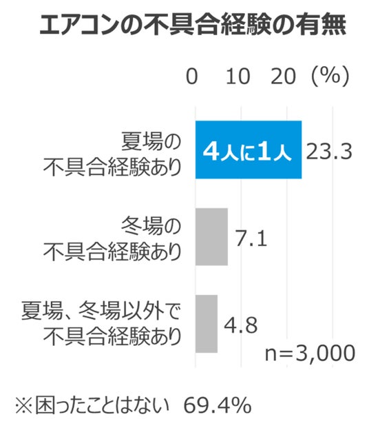 ■夏場のエアコン不具合の経験者は4人に1人