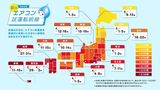 「夏のエアコン試運転指数」と2026年版「夏のエアコン試運転前線」公開!