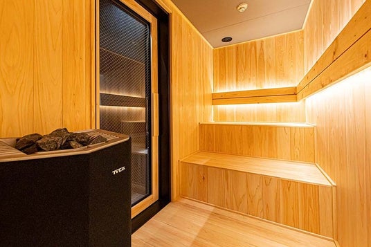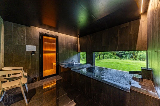 また、各棟には専用のプライベートサウナを併設。湿度が高く温度はやや低めに設定されたフィンランド式サウナを採用し、ロウリュもお楽しみいただけます。アロマオイルのご利用も可能で、より深いリラックス体験をご堪能いただけます。温泉とサウナを客室内で完結できる完全プライベート設計のため、愛犬をそばに感じながら、ご自身のペースで“ととのう”時間をお楽しみいただけるのも魅力のひとつです。