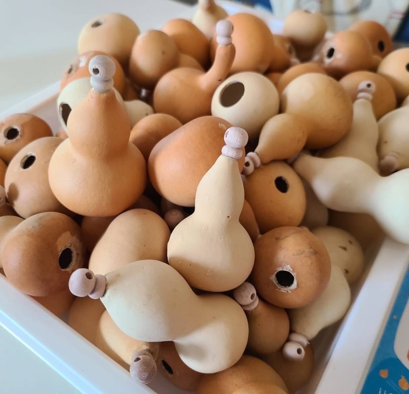 ひょうたんは古くから「福を呼び、繁栄をもたらす縁起物」とされてきました。本ポップアップストアでは、あらぽんが自ら育てたひょうたんを用い、削り・磨き・着色・仕上げにいたるまで手作業で丁寧に仕上げた作品が並びます。自然の形そのものを活かしているため、同じものは二つとして存在しません。飾る・持ち歩く・使う、そのどれでも、ひょうたんがもたらす豊かさと縁起の良さを身近に感じていただけます。