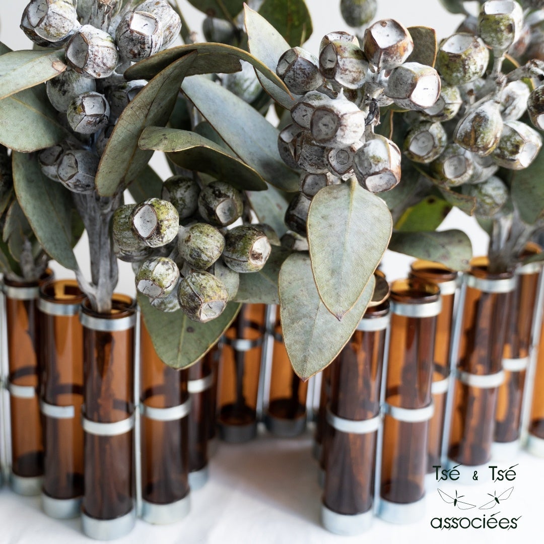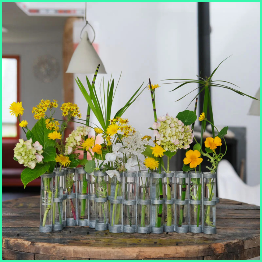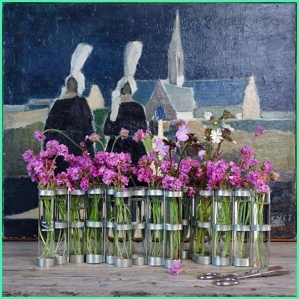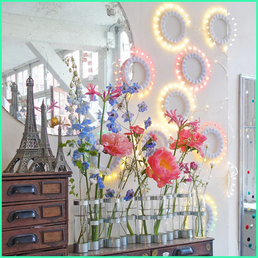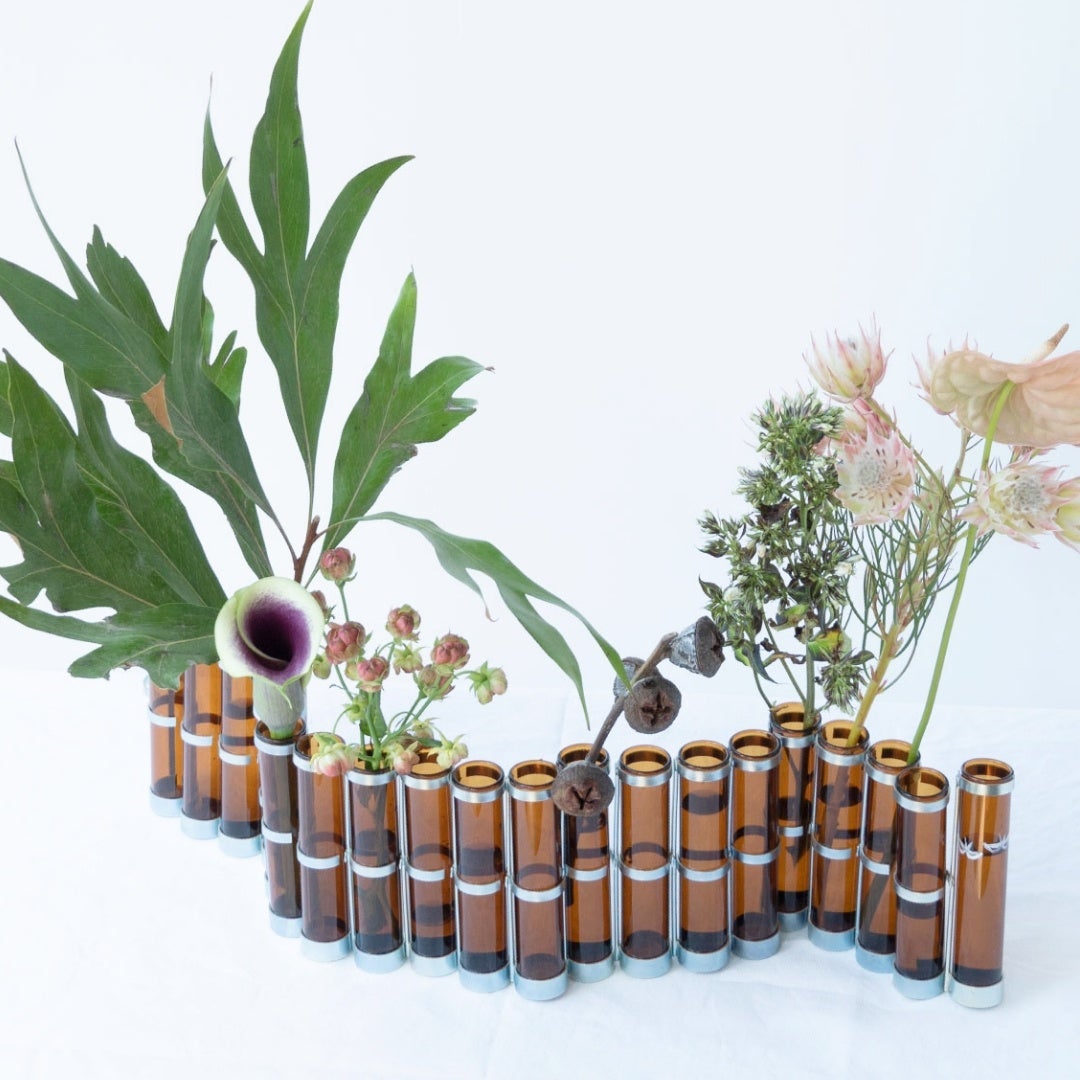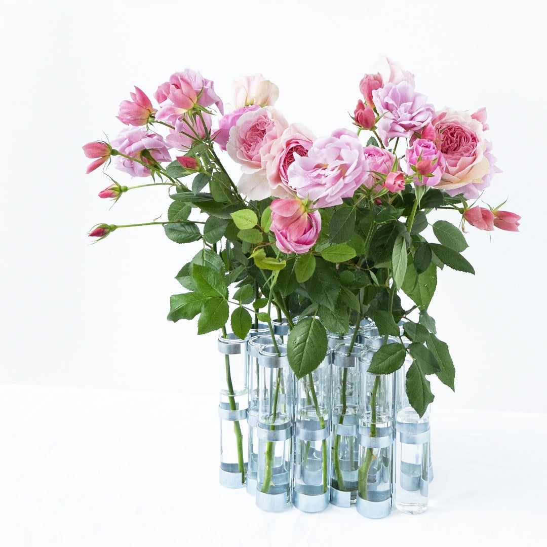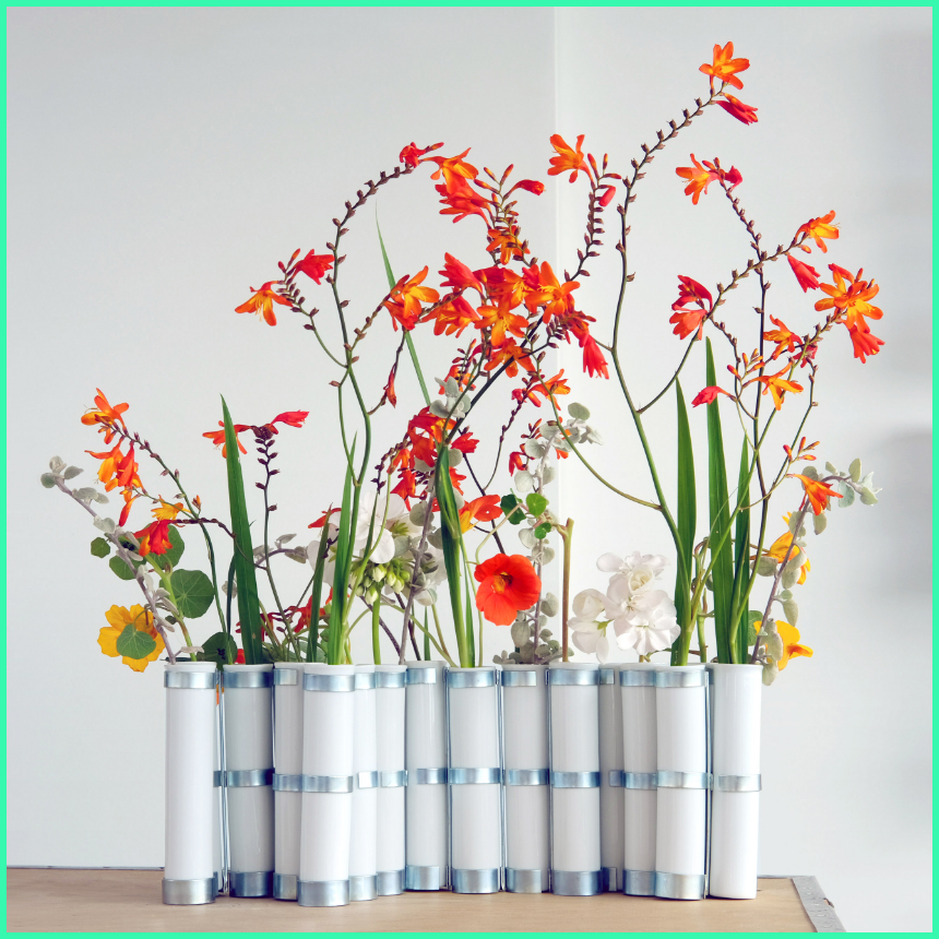 12~21本の花瓶が連結されていて、個性的な形をつくります。花が自然そのものであったことを忘れないのです。