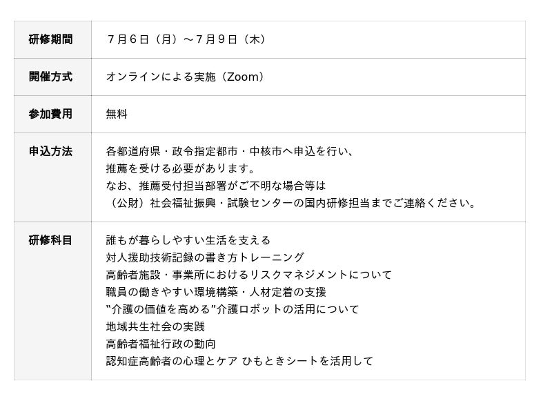受講料無料!!公益財団法人社会福祉振興・試験センターでは、場所を問わずに受講ができるオンライン研修を開催いたします。