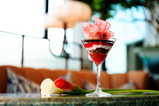 さらに、このひとときを印象的に彩る、かつてのマンハッタンの社交文化に着想を得たオプションメニューをご用意しまし た。ニューヨークのダイナミズムを象徴する「黒毛和牛のローストビーフ」は、なめらかなマッシュポテトと山わさびが爽やかに香るグレイビーオニオンソースを添え、アフタヌーンティーの幕間にふさわしいリッチな仕立てに。「ジャン・クラウド・エクストラ風 苺とカカオのクープ」は、ウォルドーフ・アストリア・ニューヨークに伝わるオールドレシピへの深いオマージュ。リッチなチョコレートのコクと、甘酸っぱい苺が奏でる鮮やかなハーモニーが、かつてのマンハッタンの社交場を彷彿とさせる、エレガントで艶やかなひと皿です。