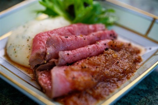 ・ 黒毛和牛のローストビーフ シルキーマッシュポテトと山わさび風味のグレイビーオニオンソース