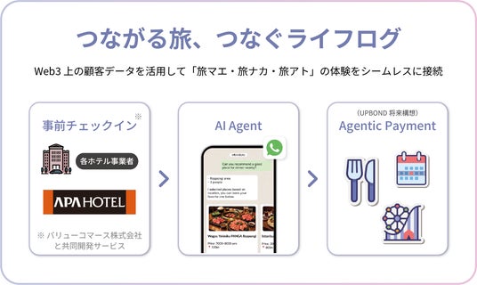 株式会社UPBONDは、「ライフログの可能性を解き放つ」をミッションに掲げ、本人認証、事前チェックイン、AIエージェント、ウォレットをシームレスにつなぐことで、テクノロジーの力を活用した新しい旅行体験の創出と進化に、今後も継続して取り組んでまいります。