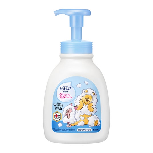 「泡で出てくる!ボディウォッシュ」は、「ビオレu」オリジナルの、泡に包まれたプーさんデザインで、思わずからだを洗うのが楽しくなるパッケージとなっています。