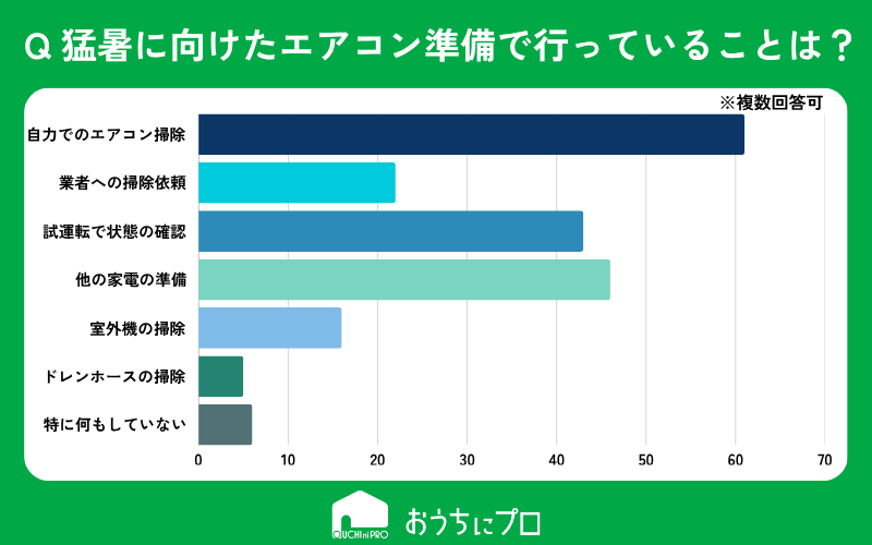 猛暑に向けたエアコン使用の準備として行っていることは何ですか?(複数回答可能)