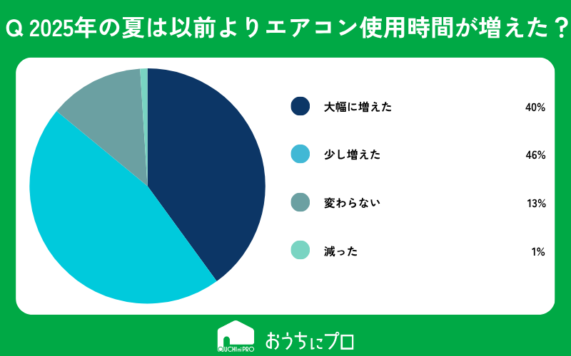 2025年の夏はそれ以前の夏と比べてエアコンの使用時間は増えましたか?