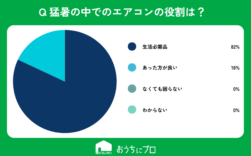 - 夏におけるエアコンは「生活必需品」だと82%の人が認識している。