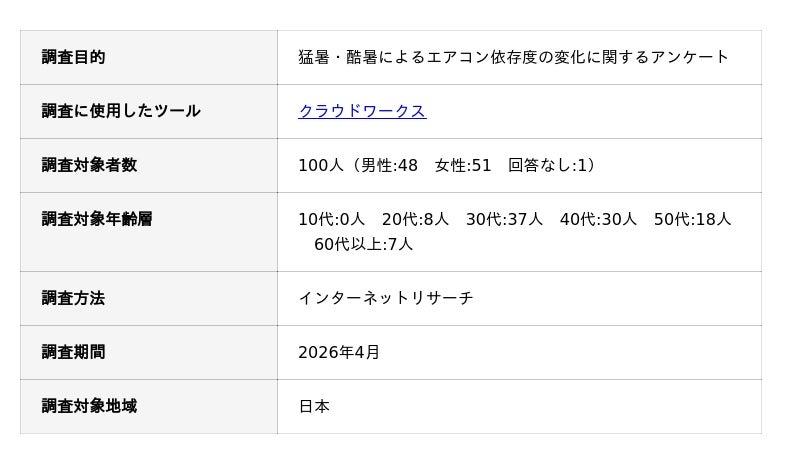猛暑・酷暑によるエアコン依存度の変化に関するアンケート調査の概要