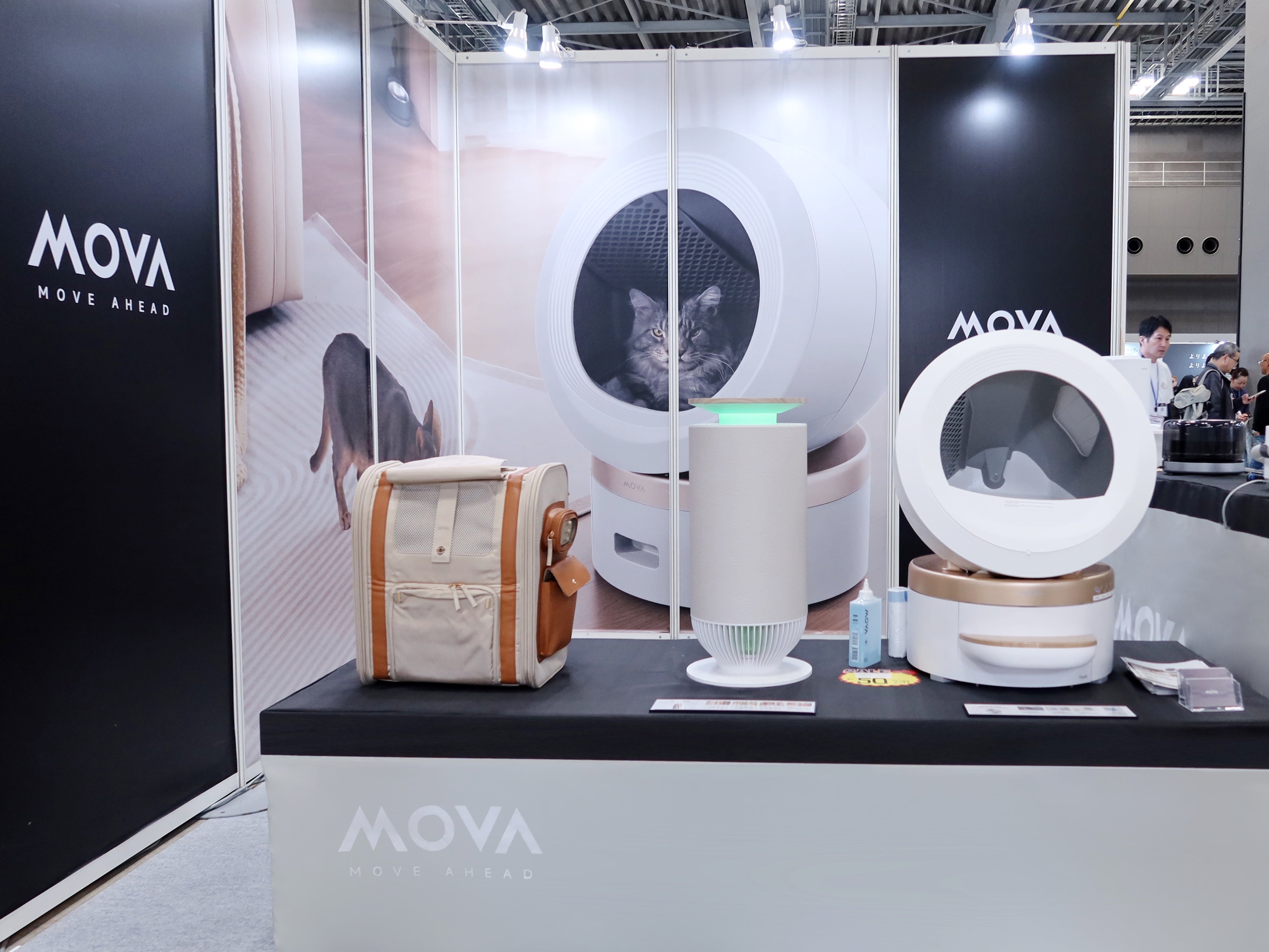 今回展示した製品は、昨年クラウドファンディングによる先行発売で即完売し、注目を集めたスマート消臭猫トイレ「MOVA LR10 Prime」や、ペットグルーミング掃除機、自動給餌器など6点です。