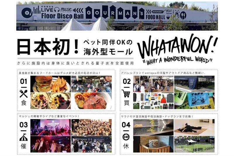 日本最大級ペット同伴OKの海外型モール『WHATAWON』南大阪に位置するWHATAWON(ワタワン)は、グルメ、ショッピング、温浴施設など、多様な楽しみが詰まった複合施設。ペットを家族の一員として大切にされている多くの飼い主の皆さまも快適にお楽しみいただけるように設計された、ペットフリーの新しいスタイルのエンターテインメントモールです。