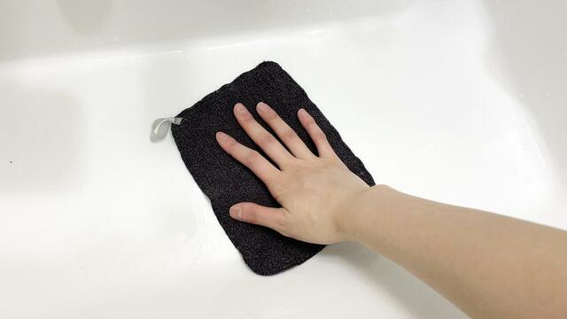 濡らすと生地に弾力が出ます。これを使うと、水だけで汚れをかき取ってくれるとのこと。
