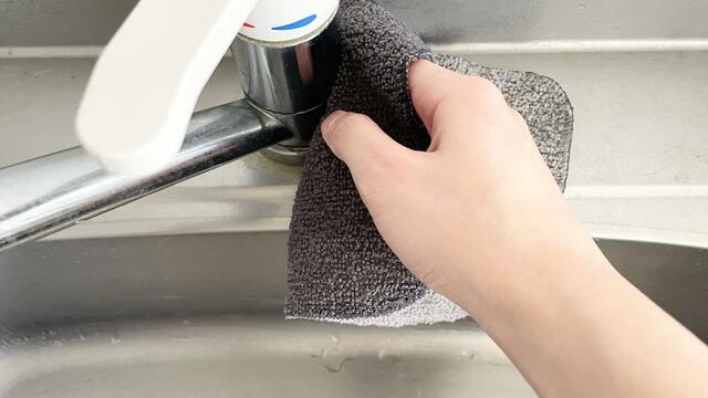 蛇口の水垢や細かい汚れを水だけでキレイに落とせるというクロスです。
