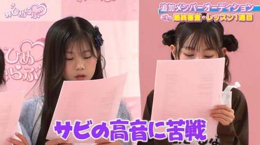 最終審査の課題曲は、ひめらぶの新曲『サンクちゅ』。現役メンバーの安定した歌唱力に合わせ、候補生にも正確な音程取りが厳格に求められます。 特にサビの高音部分には、せあんとるなが苦戦。しかし、自宅での徹底的な自主練習を経て、2週目のレッスンでは見事に音程を修正し、審査員を驚かせる執念を見せました。