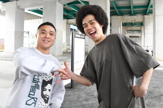 当日のデモンストレーションを行ったスケーター 岡田 仁之介 さん( ※ 写真左 )