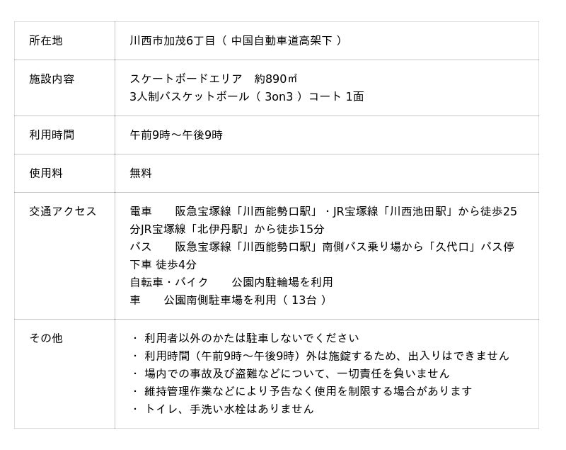川西市 越田 謙治郎(こしだ けんじろう)市長今回の取り組みは、子どもたちや若者たちの声から始まりました。今まで、近隣住民からの苦情もあり、若い人たちにはスケボーをしないでと言うしかないなかで、新しくスケートボードができる場所を作ってあげたいと思いました。場所、資金、維持管理など様々な課題がありましたが、NEXCO西日本様、宝塚土木事務所様、秀野ゆかり様、クラウドファンディングにご参加いただいた皆様、川西市スケートボード協会様、地元企業の阪神環境様、宮本建設様、地域の皆様など、たくさんの方々にご協力いただいたことにより、実現いたしました。ご協力いただいた皆様に御礼申し上げます。