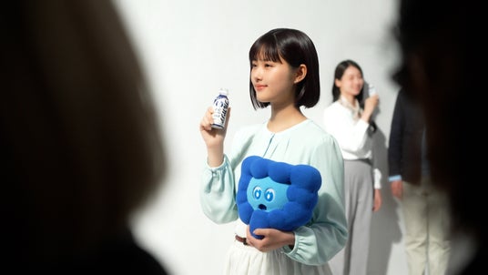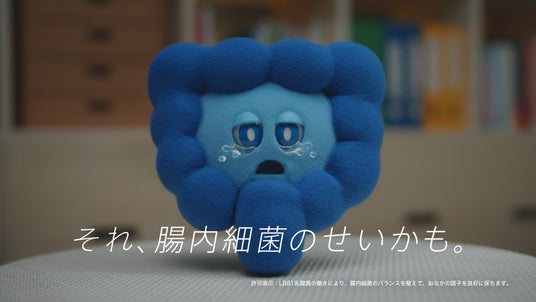 新CMでは、特定保健用食品として「腸内細菌のバランスを良好に保つ」効果が認められた本商品のベネフィットにちなみ、「腸内細菌のせいかもしれない」がコンセプト。原菜乃華さん演じる“仕事や日常でスッキリしなくてモヤモヤしてしまう女性”が、間宮くるみさんが声優を務める、腸のキャラクター「ちょぴ」との出会いを通じて、その原因が腸内細菌にあるかもしれないと気付き、商品を飲む姿が描かれています。前半の雨模様のオフィスでため息をつく等日常のシーンから一転、後半では木漏れ日の中で「ちょぴ」を抱きかかえてくつろぐ姿へ。原さんの等身大で自然体な表情と、不思議な相棒が見守る“ほっこり”した世界観が見どころです。